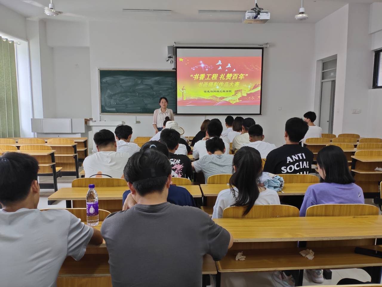 为庆祝中国共产党百年华诞,重温党的光辉历程,讴歌党的伟大成就,6月9日下午,信息与网络工程学院在致知楼B204教室举办“书香工程 礼赞百年”书画摄影作品大赛。学院团委书记汪琦、团委委员、学生会主席及各部门部长担任评委,比赛由汪琦主持。