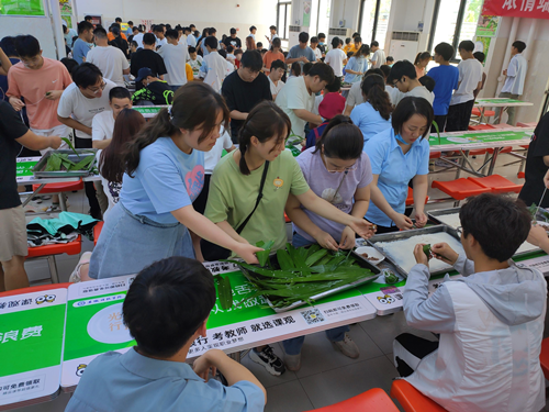 端午近,粽香飘。在端午佳节临近之际,为使学院学子深入了解传统节日、传承文化习俗,6月9日下午,化学与材料工程学院与天河湖餐厅联合举办“浓情端午节,粽香满校园”端午节包粽子特色活动。学院分团委副书记薛璐莎、辅导员李潮升和20级全体学生参与活动。